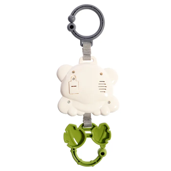 - С помощью крючка игрушка легко крепится на кроватку, коляску или автолюльку, а потом также легко снимается. Удобная ручка позволит малышу самому в любой момент включить мелодии.