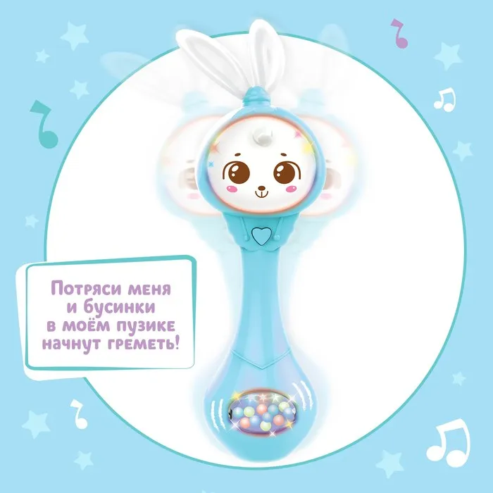 Музыкальная погремушка «Милый дружок», звук, свет, цвет голубой
