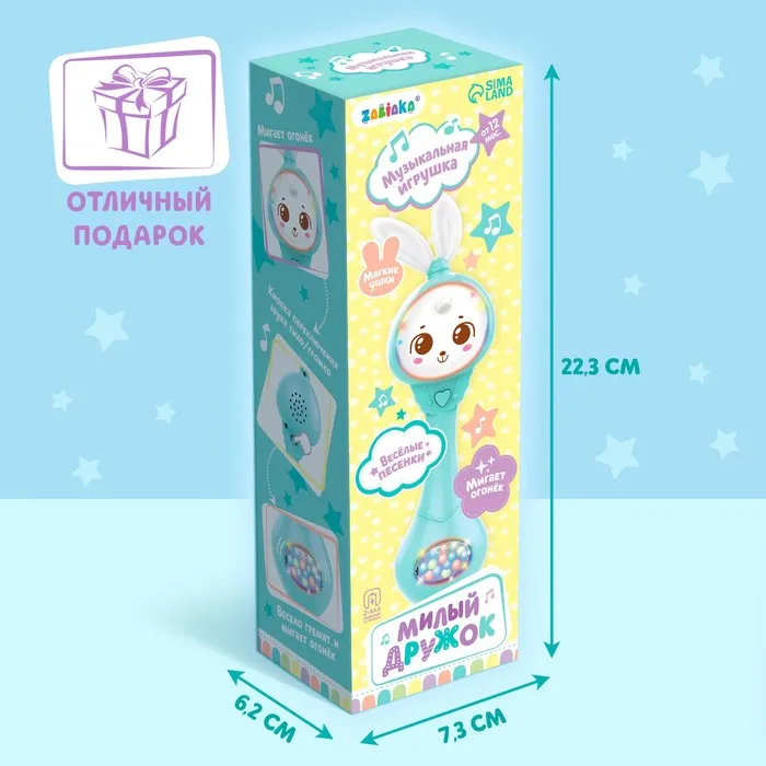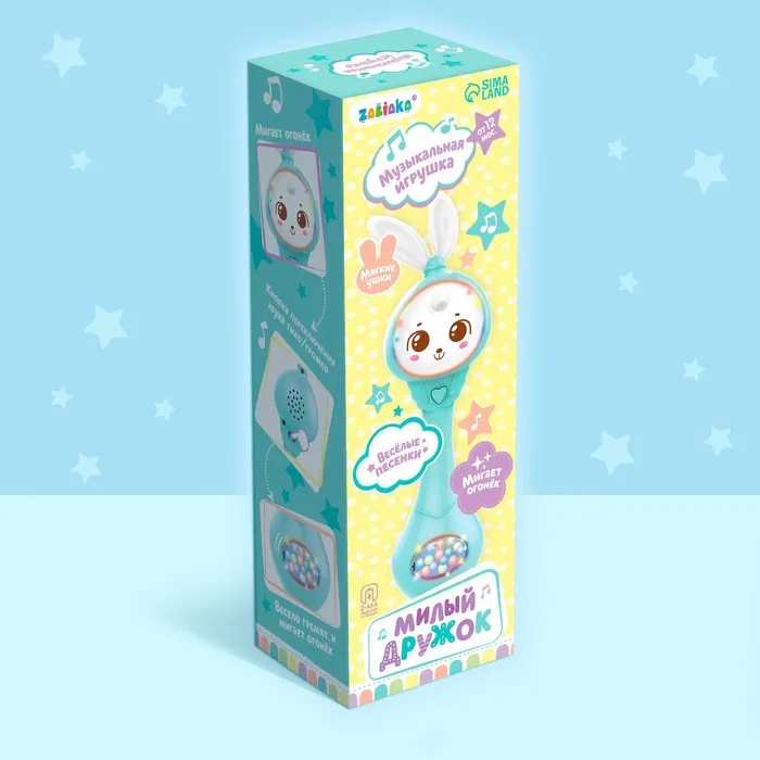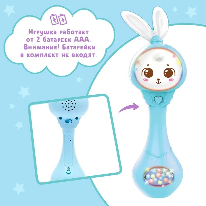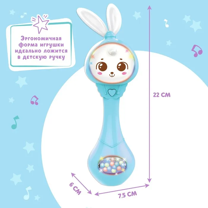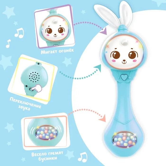 Музыкальная погремушка «Милый дружок», звук, свет, цвет голубой — Характеристики