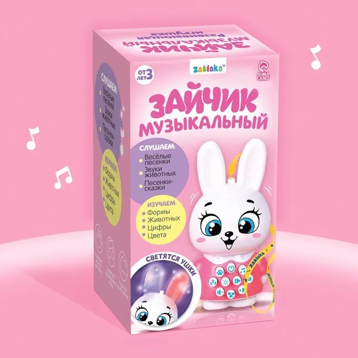 Музыкальная развивающая игрушка детская «Зайчик», свет, звук, с кнопками — Характеристики