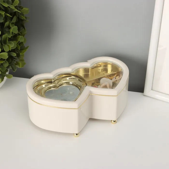 Музыкальная шкатулка механическая «Двойное сердце белое», пластик, 6×16×10 см — Характеристики