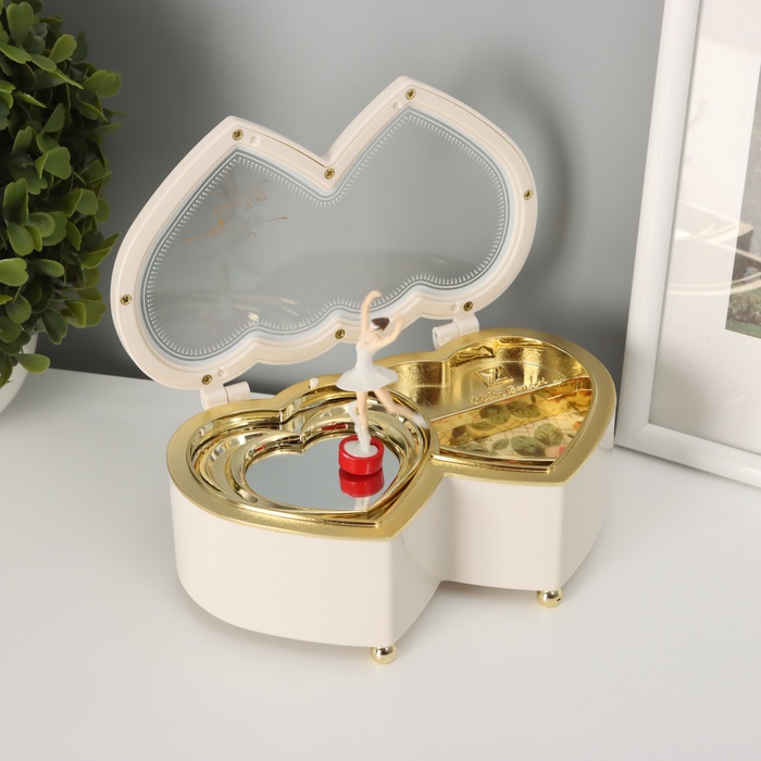 Музыкальная шкатулка механическая «Двойное сердце белое», пластик, 6×16×10 см — Характеристики