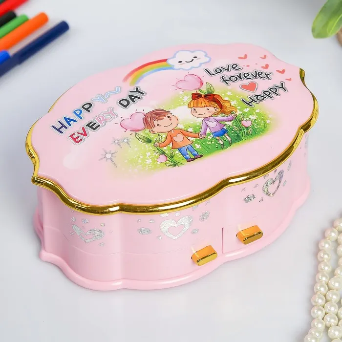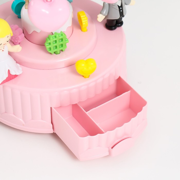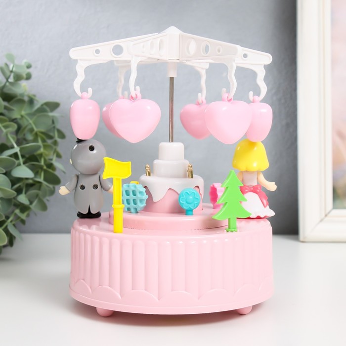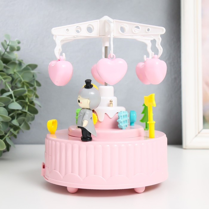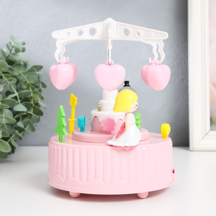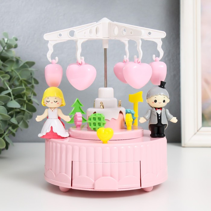Музыкальная шкатулка механическая «Карусель - свадьба», пластик, розовая, 13.5×13.5×20 см — Характеристики