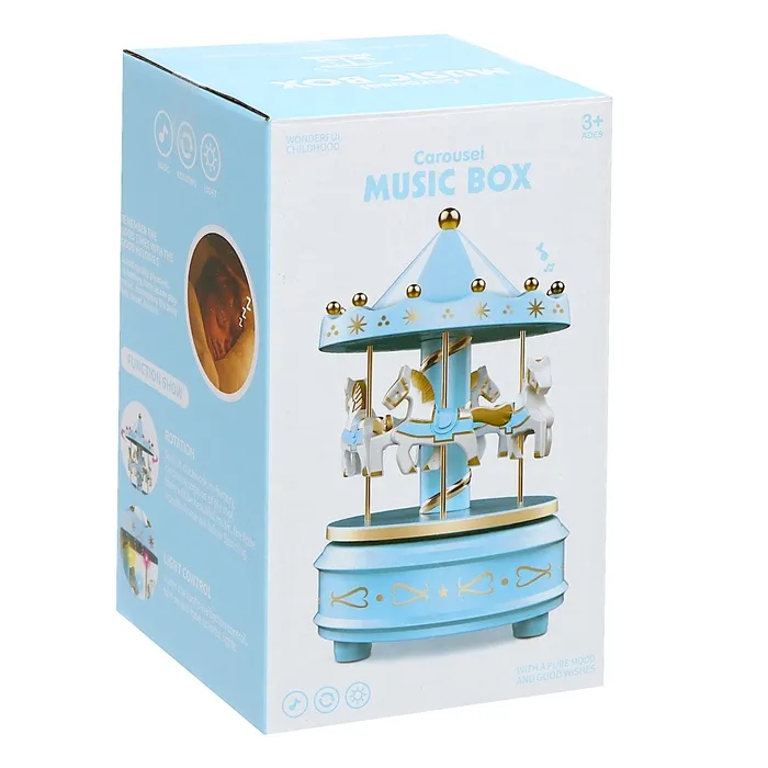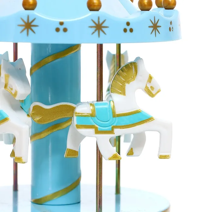 • Игрушка воспроизводит одну спокойную мелодию, лошадки двигаются по кругу.