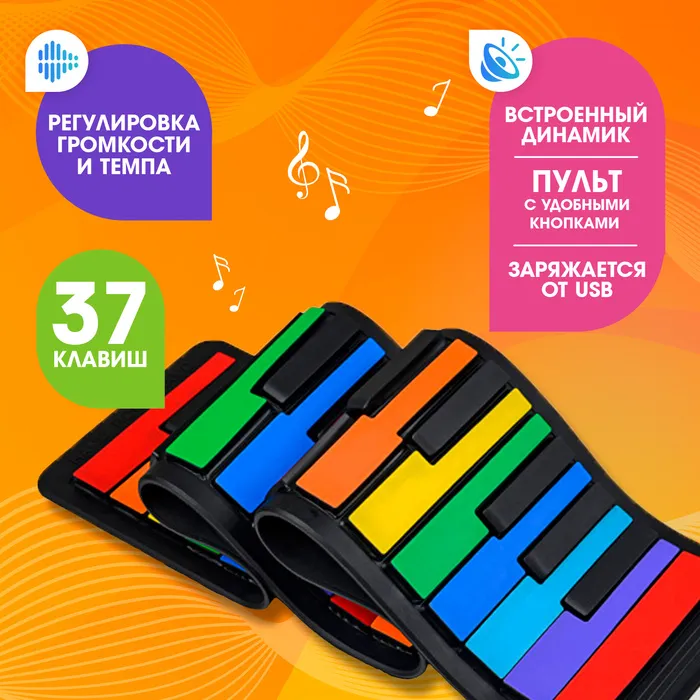 Музыкальное гибкое пианино «Волшебная музыка», 37 клавиш, работает от аккумулятора — Характеристики