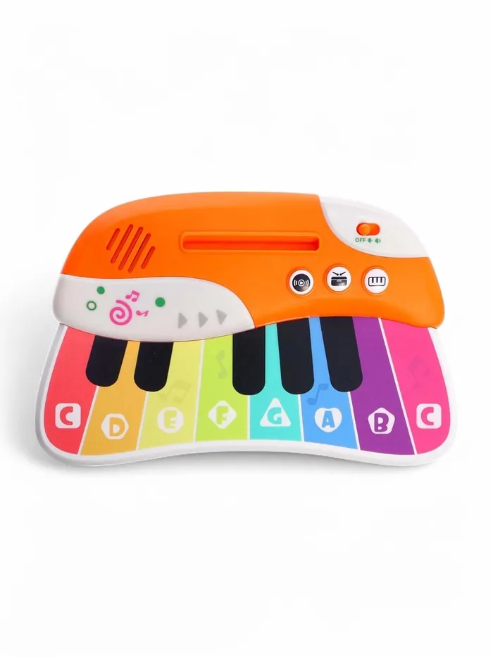 - 8 сенсорных клавиш реагируют на прикосновения, издавая приятные звуки и создавая мелодии. Это делает игру простой и увлекательной даже для самых маленьких.