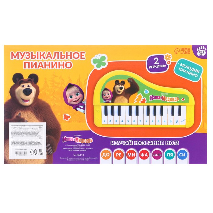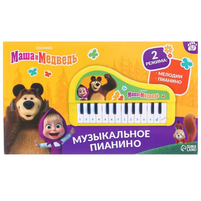 Музыкальное пианино «Маша и Медведь», звук, цвет жёлтый — Характеристики