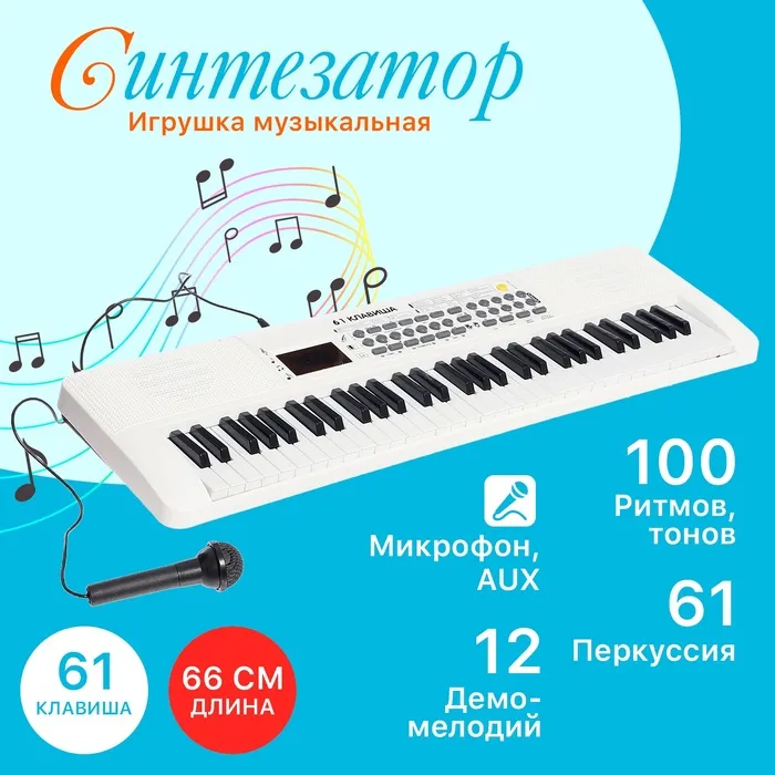 Музыкальное пианино «Весёлая мелодия», звук, свет, цвет синий — Характеристики
