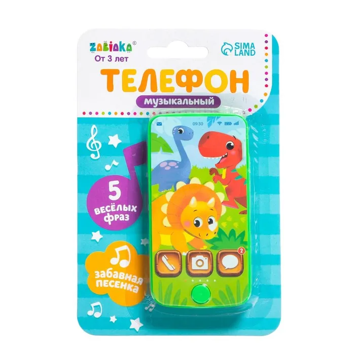 Музыкальный детский телефон «Динозаврик», звук, цвет зелёный — Характеристики