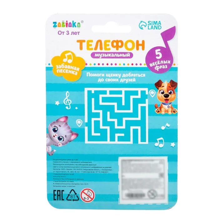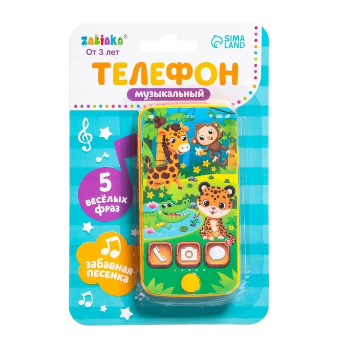 Музыкальный детский телефон «Весёлая африка», звук, цвета МИКС — Характеристики