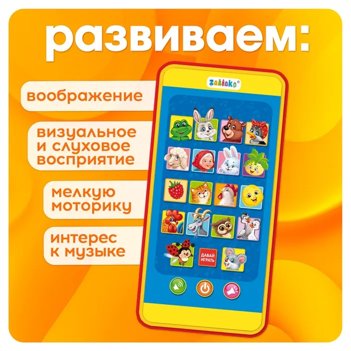 Яркий телефон поможет малышу активно учиться и развиваться. Оригинальный дизайн, отличное сочетание цветов привлекут ребёнка, и он с удовольствием заинтересуется этой игрушкой.