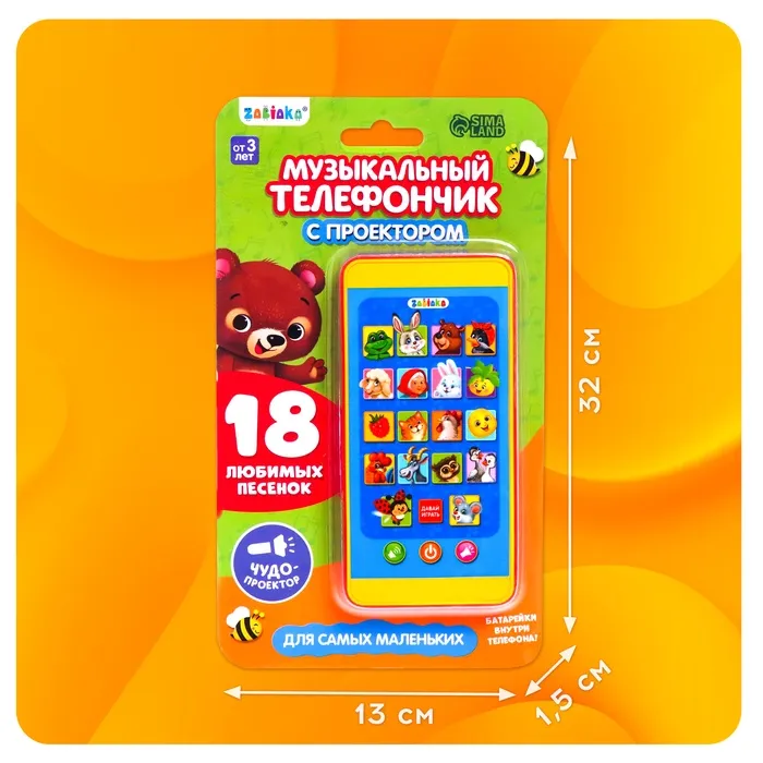 Музыкальный телефончик с проектором «Забавные зверята» рекомендован детям старше 3 лет.