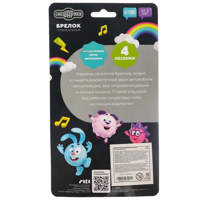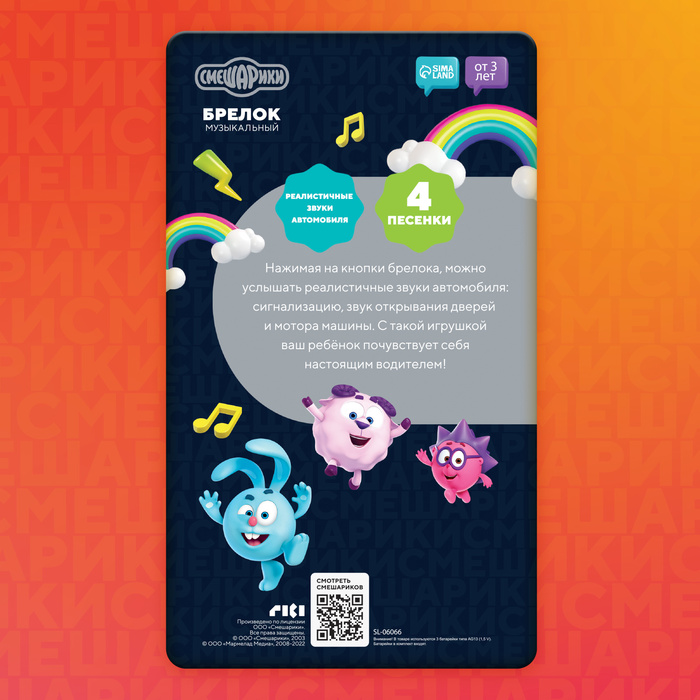 Музыкальный игрушка-брелок «Смешарики», звуковые эффекты, цвет жёлтый — Характеристики