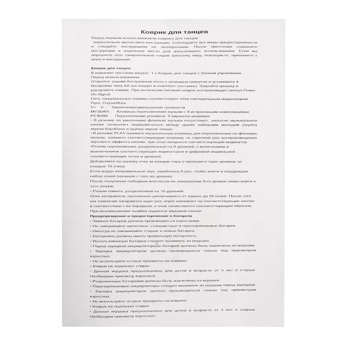 Музыкальный коврик «Для танцев», 90 × 90 см, 3+ — Характеристики