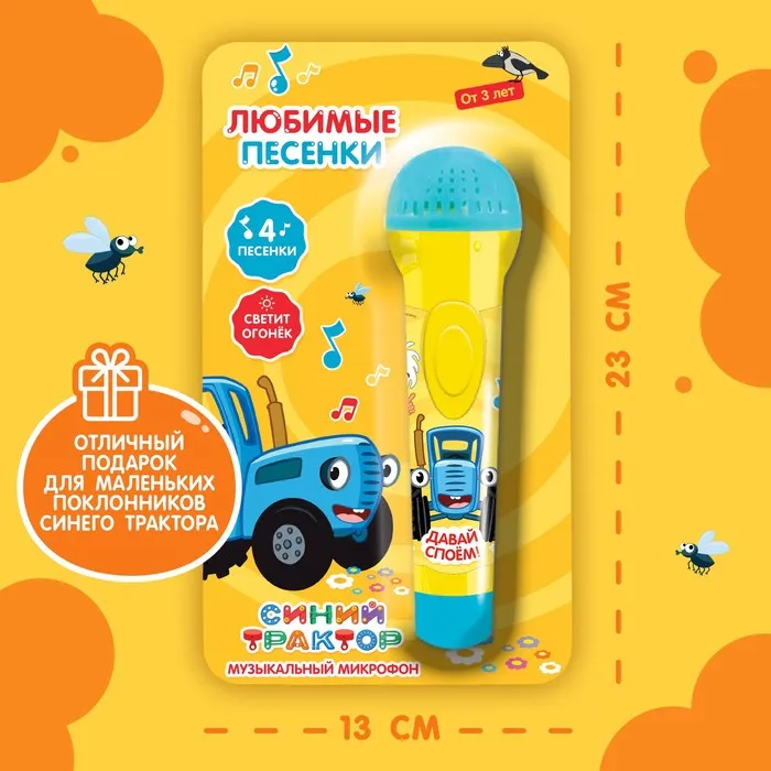 Пойте и веселитесь вместе с любимым героем! Детский микрофон «Синий трактор» — это яркая музыкальная игрушка с популярными песнями из мультфильма. Микрофон превратит любой день в праздник, поможет развить музыкальный слух и подарит часы радости.