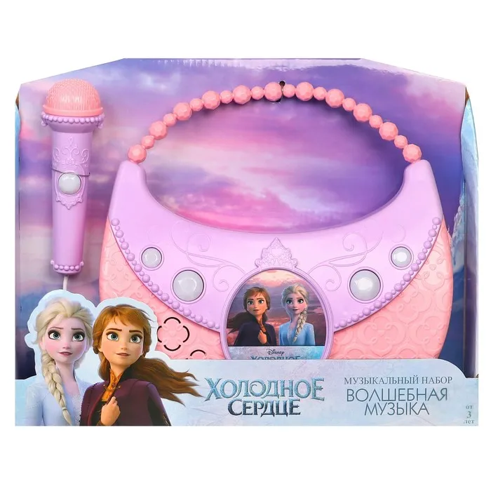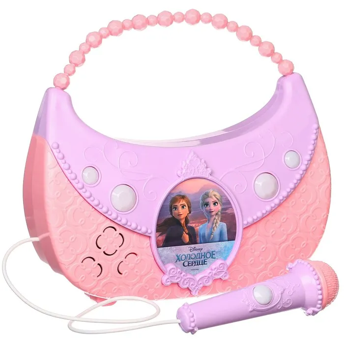 Пой как Эльза с микрофоном и мерцающей сумочкой! Детский микрофон «Холодное сердце» со светом и звуком превратит любую комнату в сцену из любимого мультфильма. Девочки от 3 лет смогут петь, менять мелодии и чувствовать себя настоящими принцессами Аренделла.