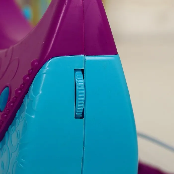 - Корпус из прочного пластика без острых углов. Работает от батареек АА — можно брать с собой в гости или на прогулку.