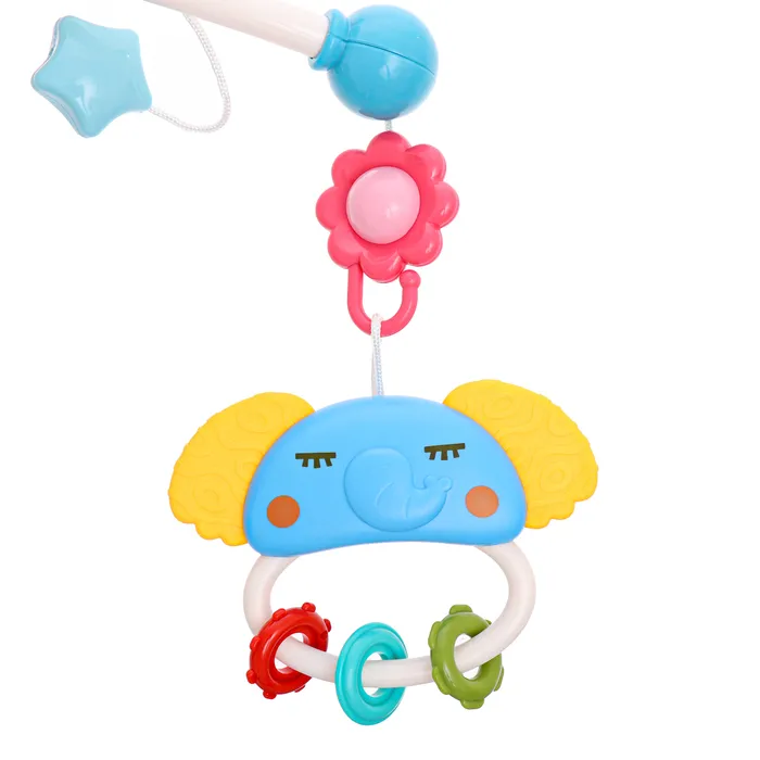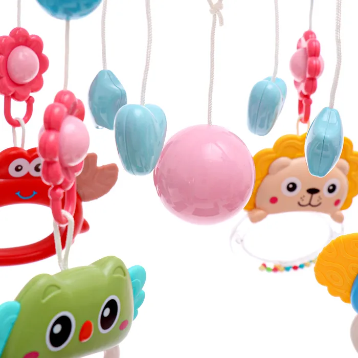 - 5 ярких игрушек-погремушек можно снимать и использовать как прорезыватели.