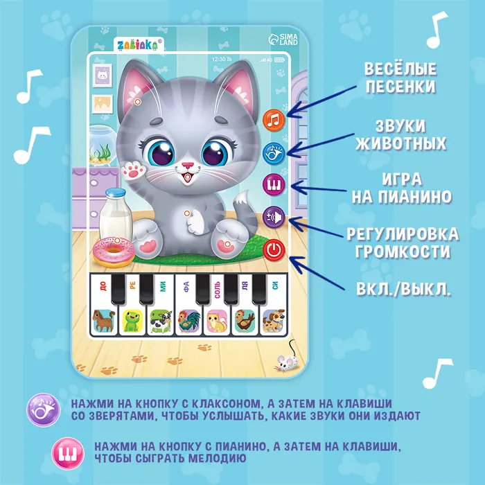 Музыкальный планшет «Котёнок», звук — Характеристики