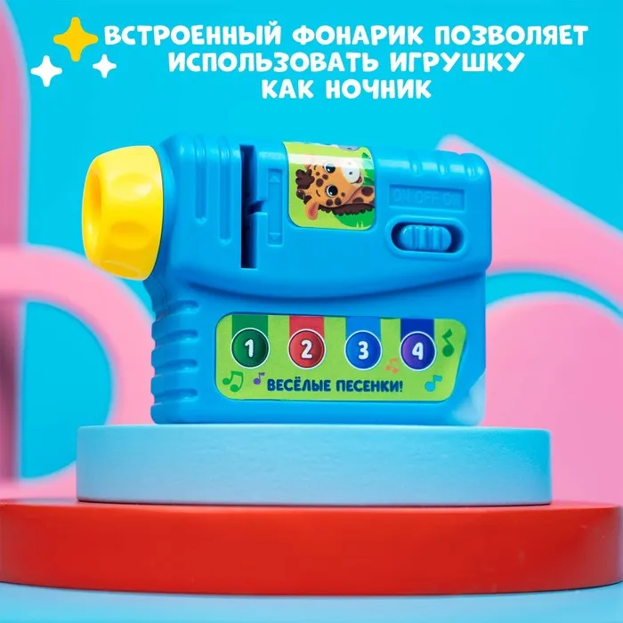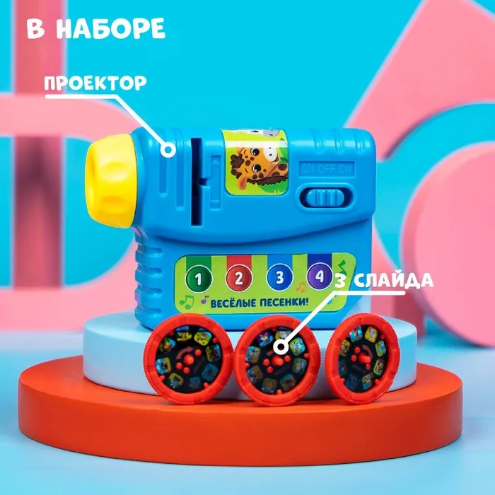 Проектор не только показывает изображения, но ещё и воспроизводит песенки-потешки по мотивам известных русских народных сказок! Встроенный фонарик позволяет использовать игрушку как ночник.