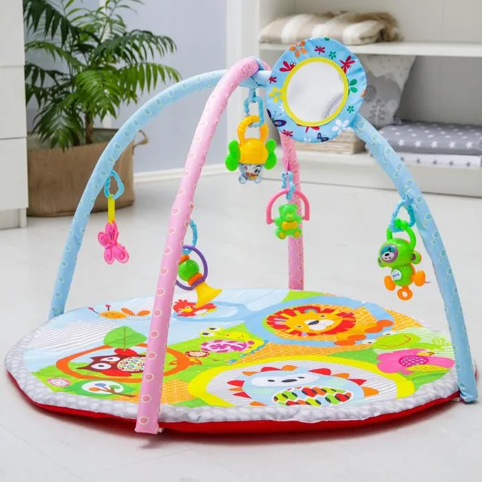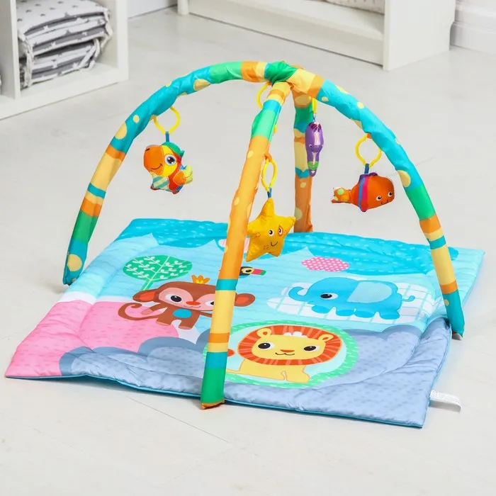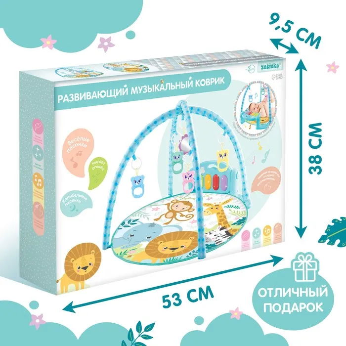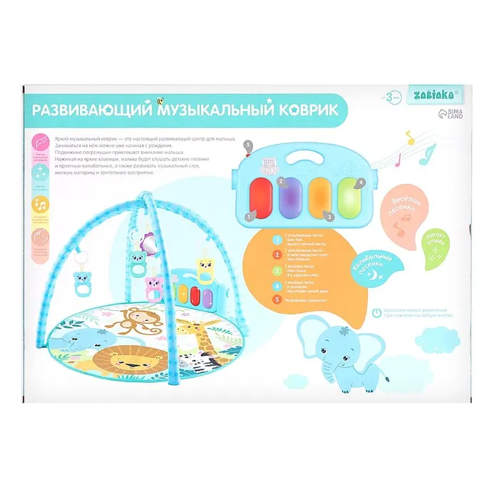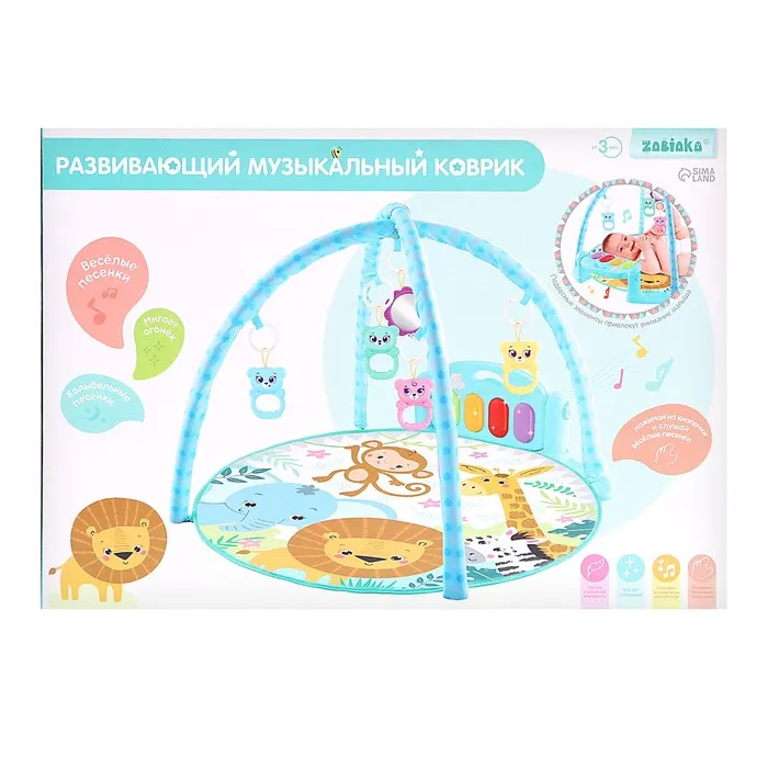 Яркий музыкальный коврик — это настоящий развивающий центр для малыша. Заниматься на нём можно уже начиная с рождения. С таким ковриком кроха быстрее научится держать головку и управлять телом, фокусировать взгляд на движущемся предмете и находить источник звука, а ещё потренирует тактильные навыки и мелкую моторику.