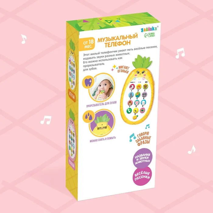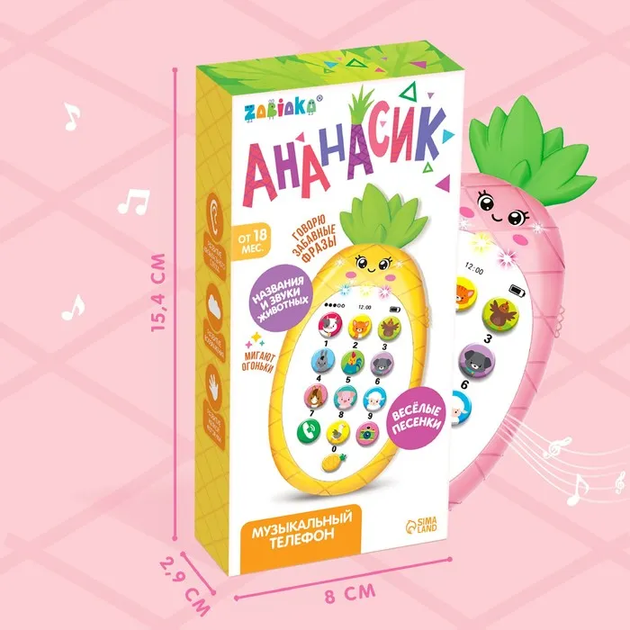 Музыкальный телефон детский «Ананасик», свет, звук, цвет розовый — Характеристики