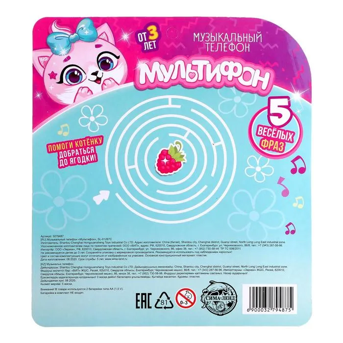 Телефон создан для сюжетных игр. Он помогает развивать моторику и слух у деток. Дизайн игрушки не оставит малышей равнодушными, ведь он выполнен с картинками милых зверят.