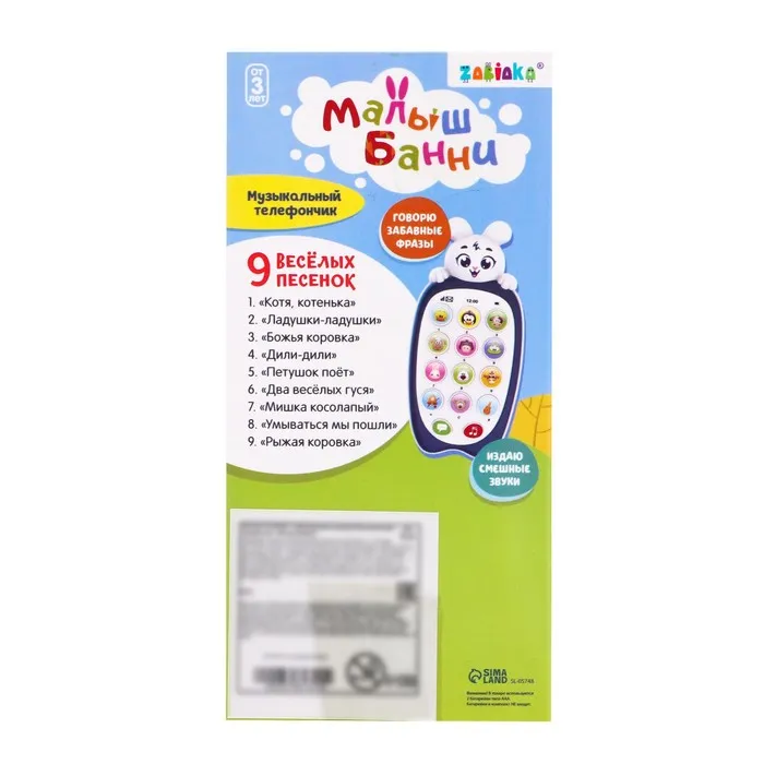 Музыкальный телефончик «Малыш Банни» поспособствует развитию памяти, внимания, мышления, мелкой моторики рук.