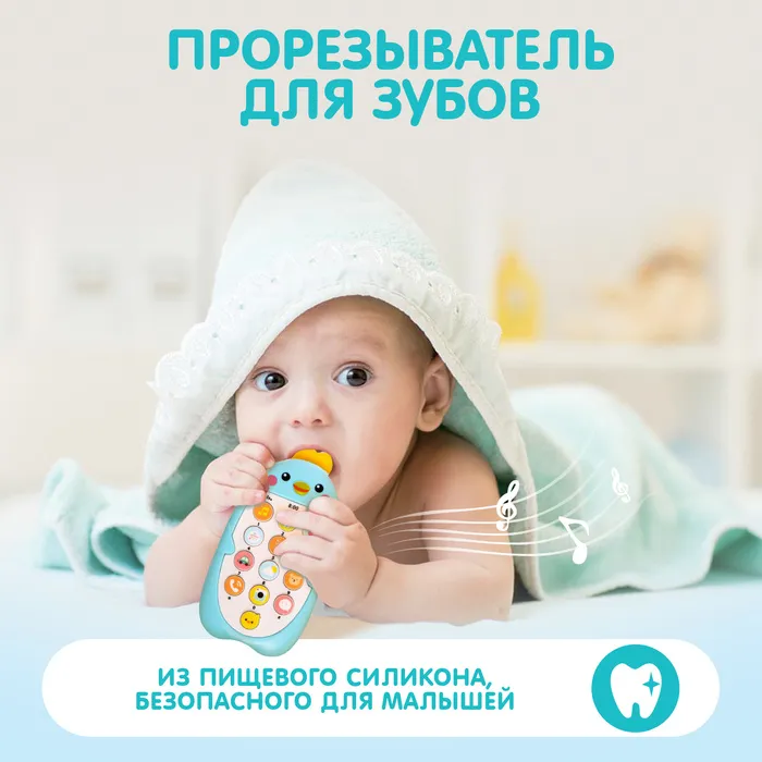 Музыкальный телефон детский «Малыш Цыпа», звук, цвет голубой — Характеристики