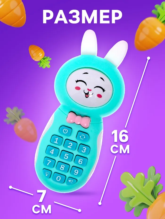 Музыкальный телефон детский «Милый зайка», звук, свет, цвет голубой — Характеристики