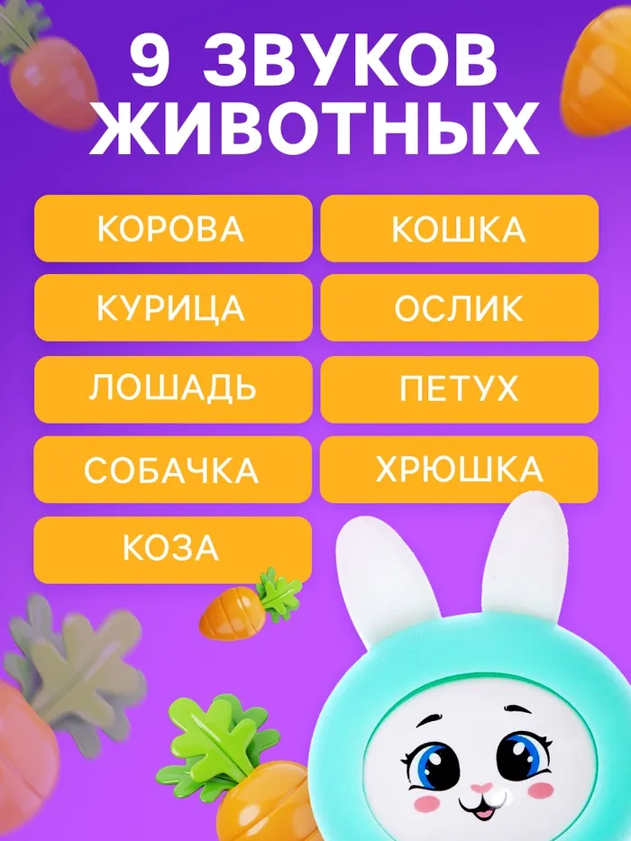 - Четыре режима игры: песенки, фразы, цифры, животные и их звуки.