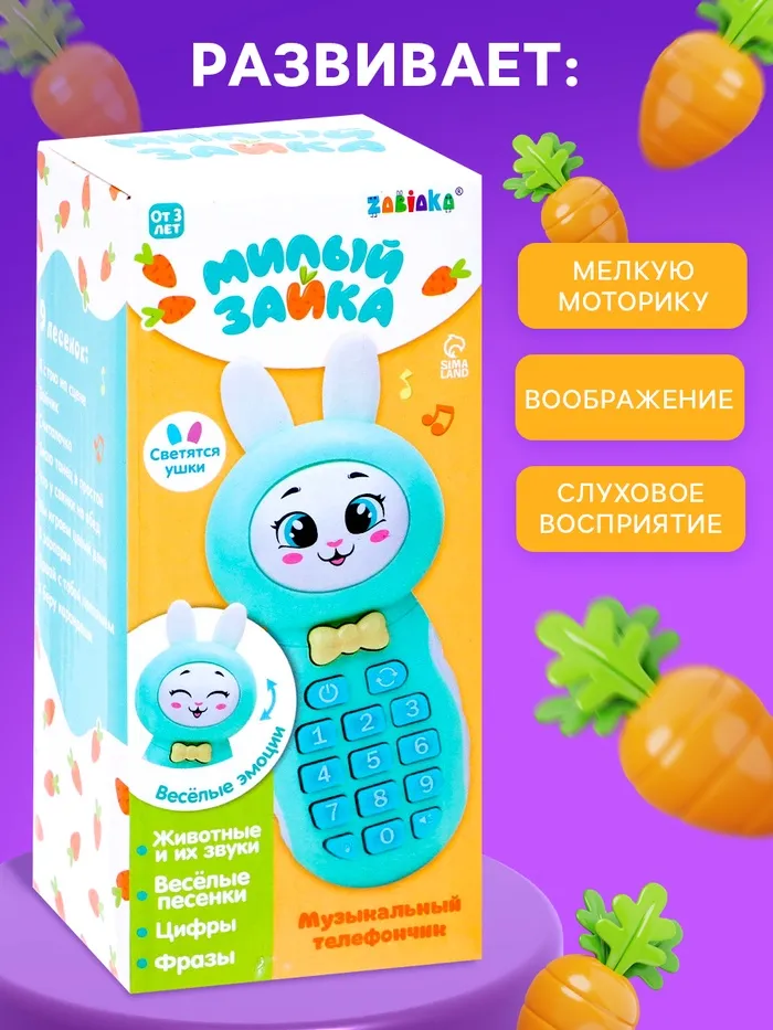 Музыкальный телефончик «Милый зайка» привлечёт внимание трогательным дизайном и надолго увлечёт малыша благодаря множеству полезных функций. Игрушка не только развлечёт ребёнка — с ней можно осваивать новые навыки!