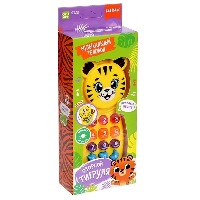 Музыкальный телефон детский «Тигруля», звук, свет — Характеристики