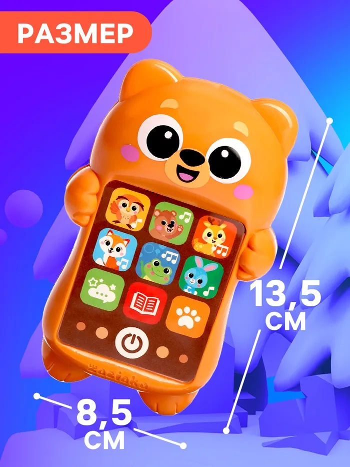 Телефончик поможет ребёнку выучить названия животных, ноты, фигуры и изучить счёт. Есть функция регулирования звука 2 режима.