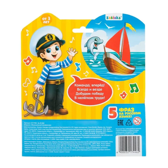 С этой игрушкой малыш сможет проигрывать различные ситуации из жизни и фантазировать. Например, представлять, как он звонит маме, папе или бабушке, или отдаёт приказы матросам.