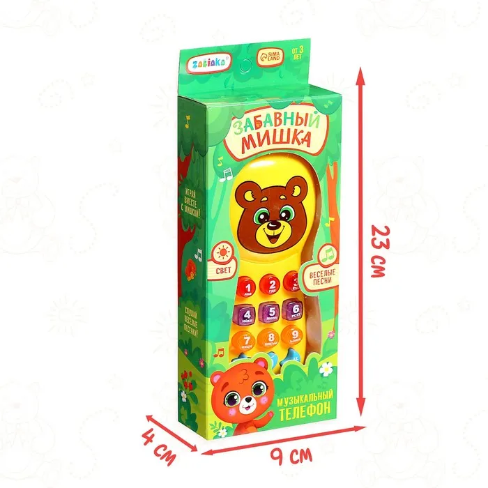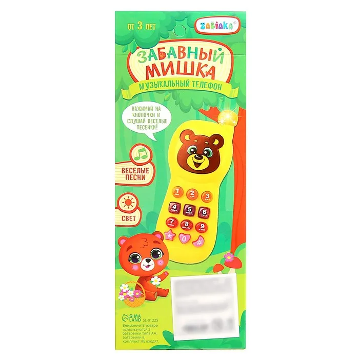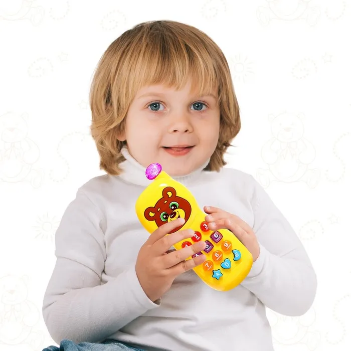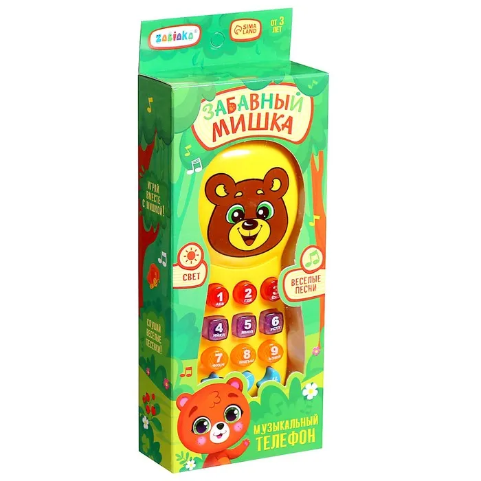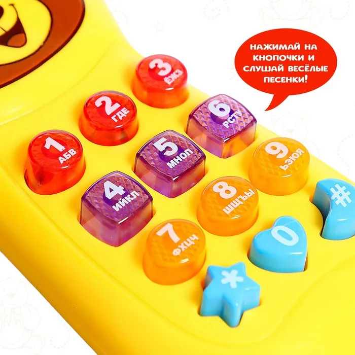 Музыкальный телефон детский «Забавный мишка», световые эффекты, русская озвучка, работает от батареек — Характеристики