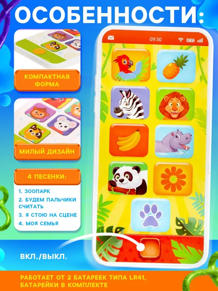 Музыкальный телефон «Весёлые зверята», звуковые эффекты — Характеристики