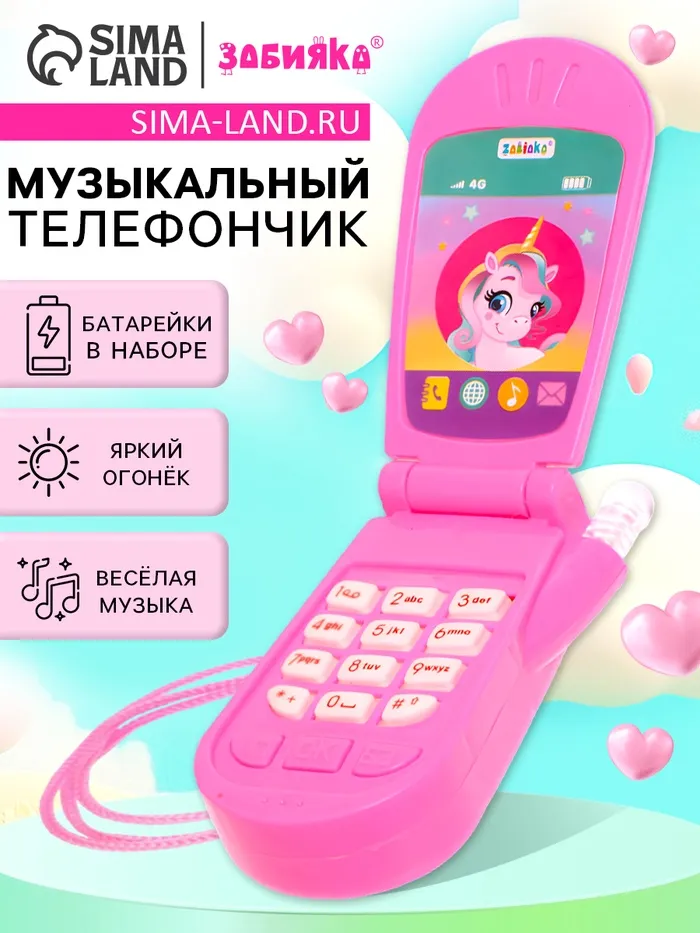 Яркий музыкальный телефон подойдёт на 8 Марта, День рождения или просто без повода. Лёгкий, звонкий и красочный — он станет любимой игрушкой для малышки от 3 лет.