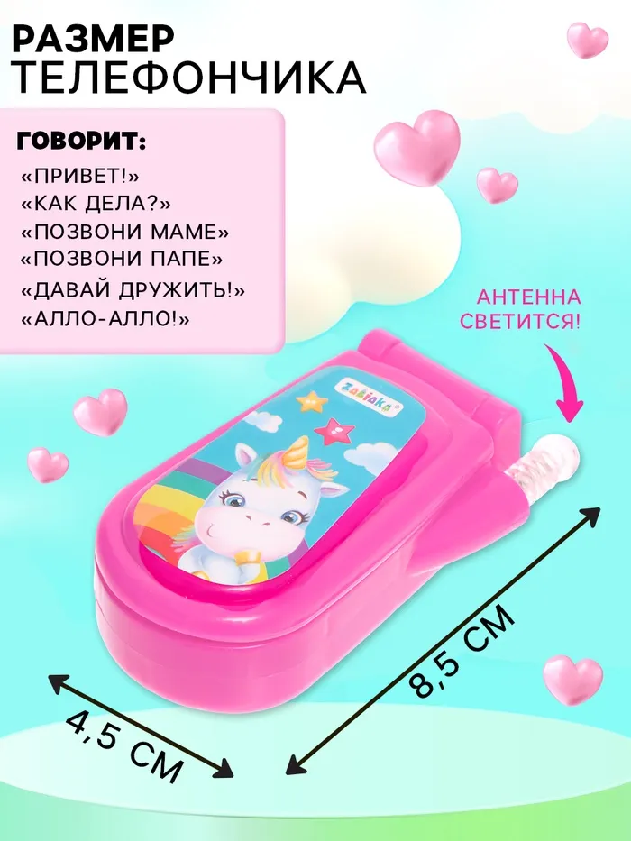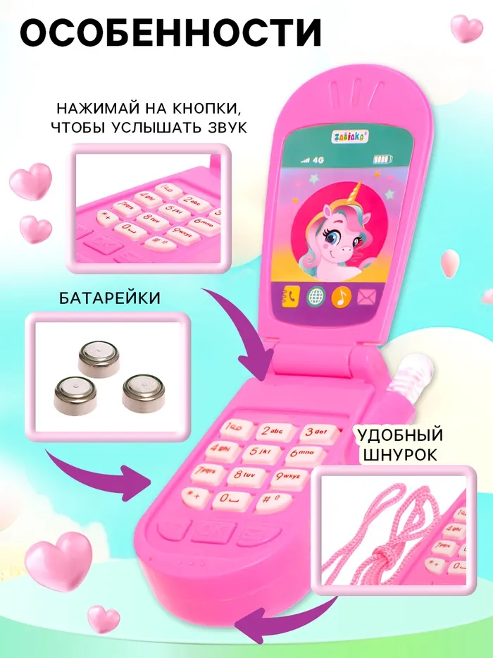 Детский музыкальный телефон «Волшебный мир» — это яркая игрушка-раскладушка со светом и звуком. Телефон познакомит ребёнка с первыми словами общения и подарит радость игры.