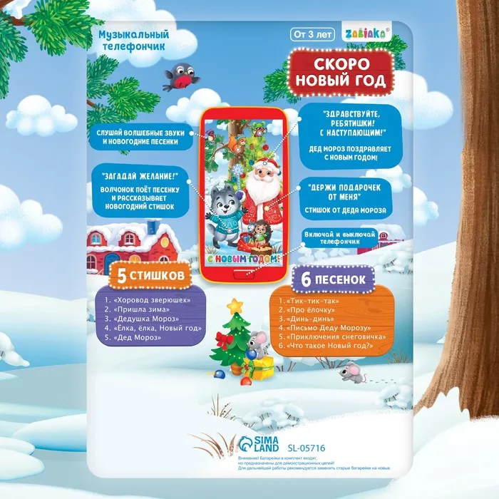 Музыкальный телефончик «Дед Мороз и зверята», звуковые эффекты — Характеристики
