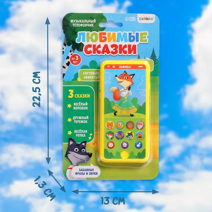 Музыкальный телефончик «Любимые сказки», звук, жёлтый — Характеристики