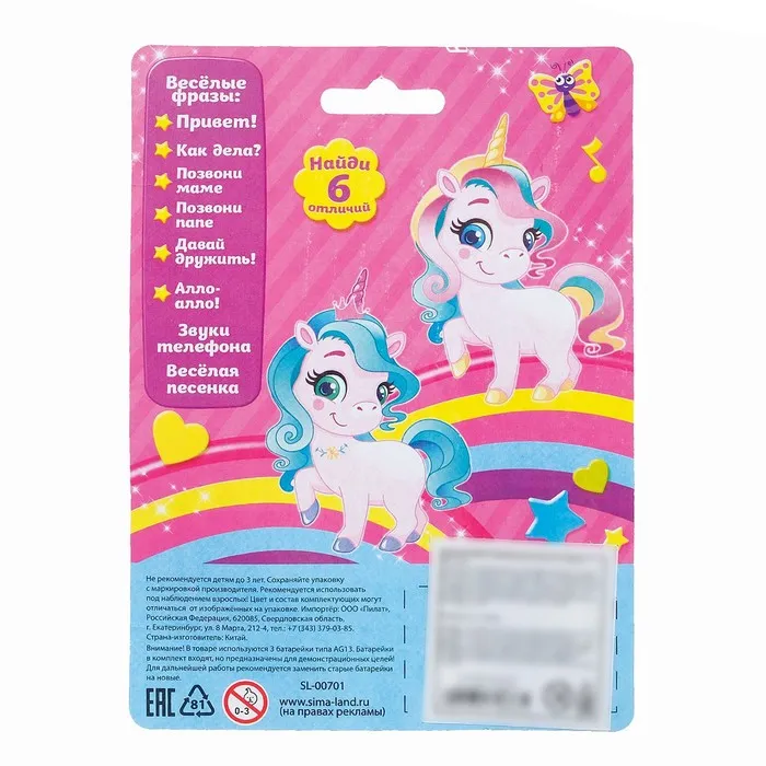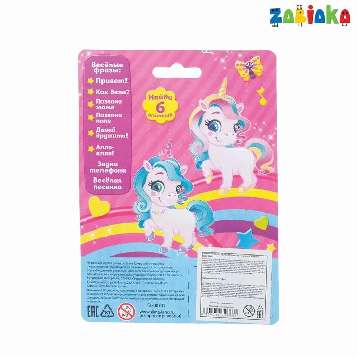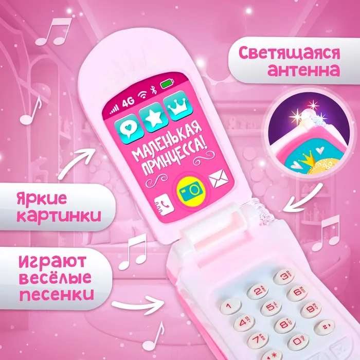 Музыкальный телефончик «Принцесса», русская озвучка, световые эффекты, работает от батареек, МИКС — Характеристики