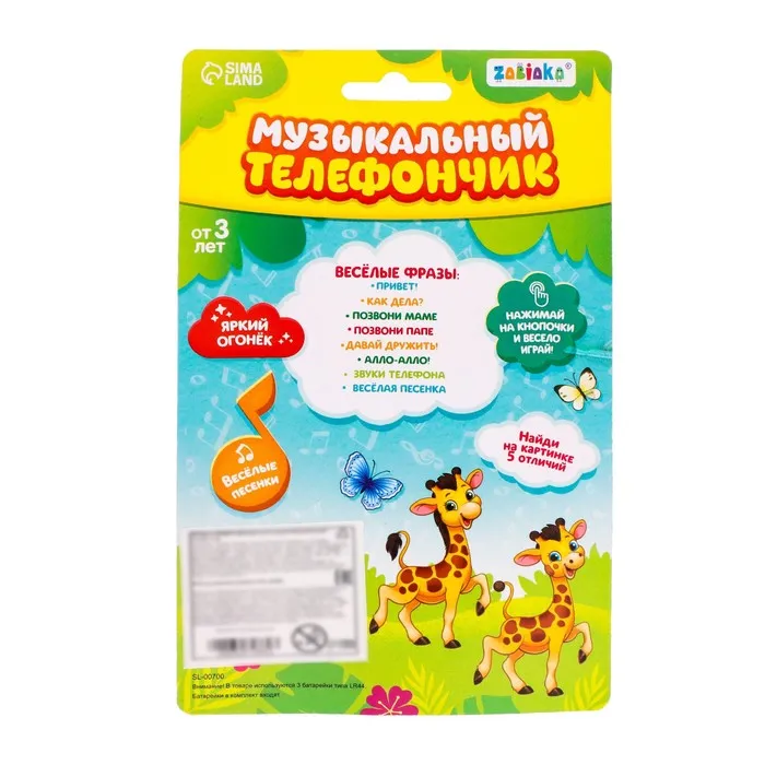 Музыкальный телефончик «Сказка», русская озвучка, световые эффекты, работает от батареек, МИКС — Характеристики