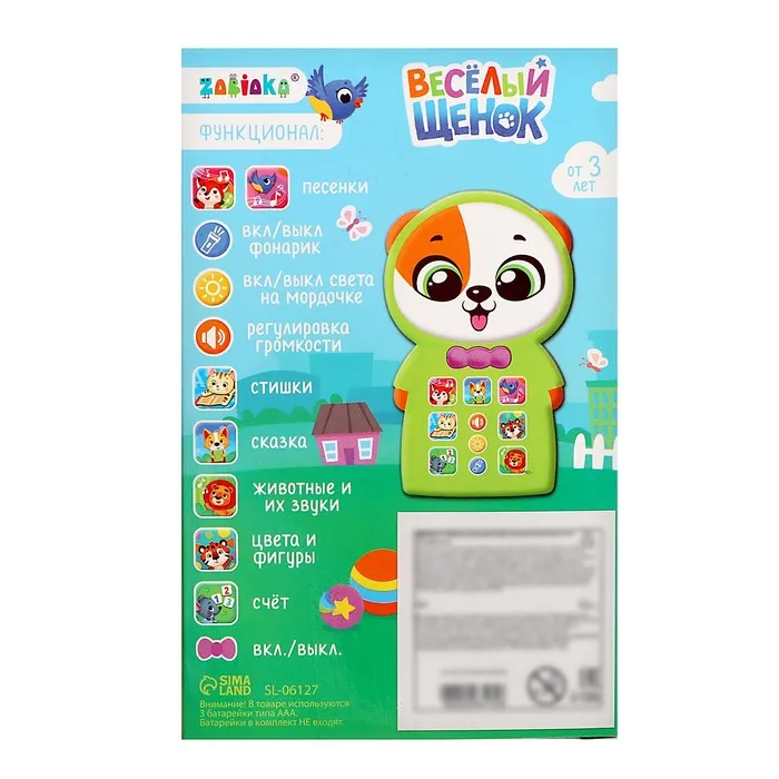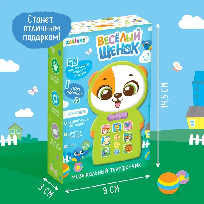 Музыкальный телефончик «Весёлый щенок», звук, свет — Характеристики