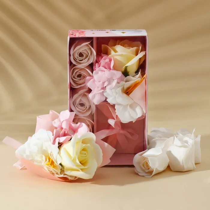 Благодаря точному повторению мелких деталей мыльные розы схожи с настоящими цветами. Композиция наполняет помещение тонким и ненавязчивым цветочным ароматом.