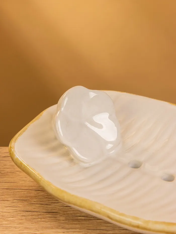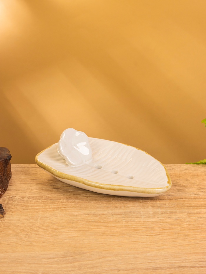 Мыльница «Флора», 14×9.5×4 см, керамика, бежево-белая