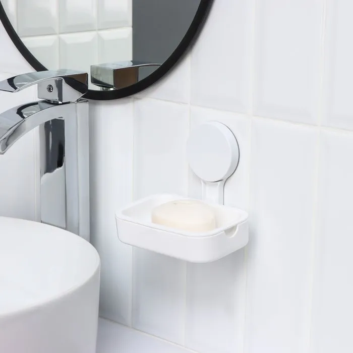 Мыльница - это удобный аксессуар для ванной комнаты, который обеспечивает комфортное использование мыла. Она выполнена из качественного пластика, устойчивого к влаге и механическим воздействиям. Благодаря липучке, мыльница легко крепится к любой гладкой поверхности, например, к плитке или стеклу.