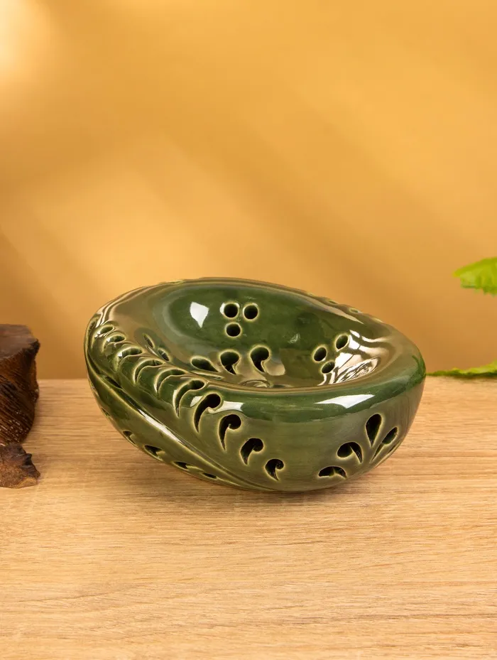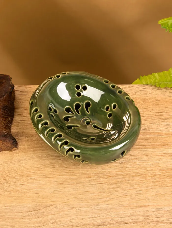 Мыльница «Цветочный узор», 13×5.5×10.5 см, керамика, зелёная