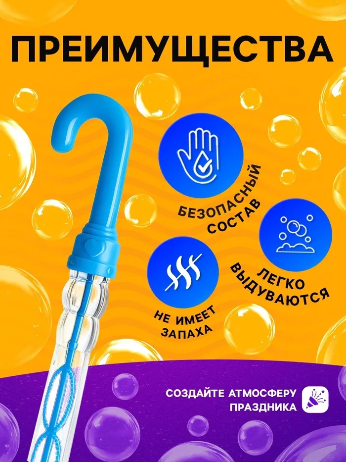 Мыльные пузыри «Зонт» прекрасно подойдут для проведения детских праздников, игр на свежем воздухе или просто для того, чтобы поднять настроение в любой момент. Это отличный подарок, который запомнится надолго.