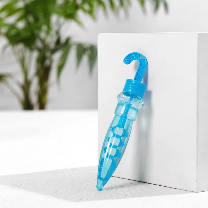Флакон мыльных пузырей, выполненный в виде яркого зонтика с ручкой, понравится и мальчишкам, и девчонкам, ведь малыши так любят цветную необычную упаковку разных форм.